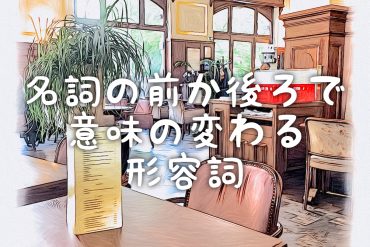 今回は、名詞の前にも後ろにもつく形容詞で、どちらに付くかで意味の変わるものを、9つに絞ってまとめてみました。私が生活していて、耳にしたり、目にしたりするものです。ぜひ見ていって下さい。