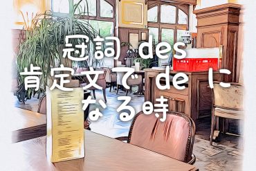 今回は、肯定文で、不定冠詞 « des » が « de » になる3つの条件を、詳しく説明したいと思います。